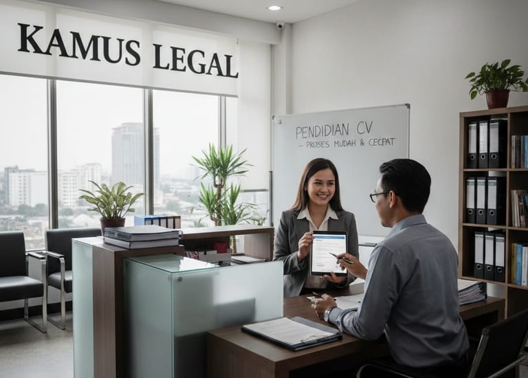 Proses pendirian PT perorangan sangat cepat dan mudah berkat bantuan Kamus Legal. Sangat direkomendasikan!